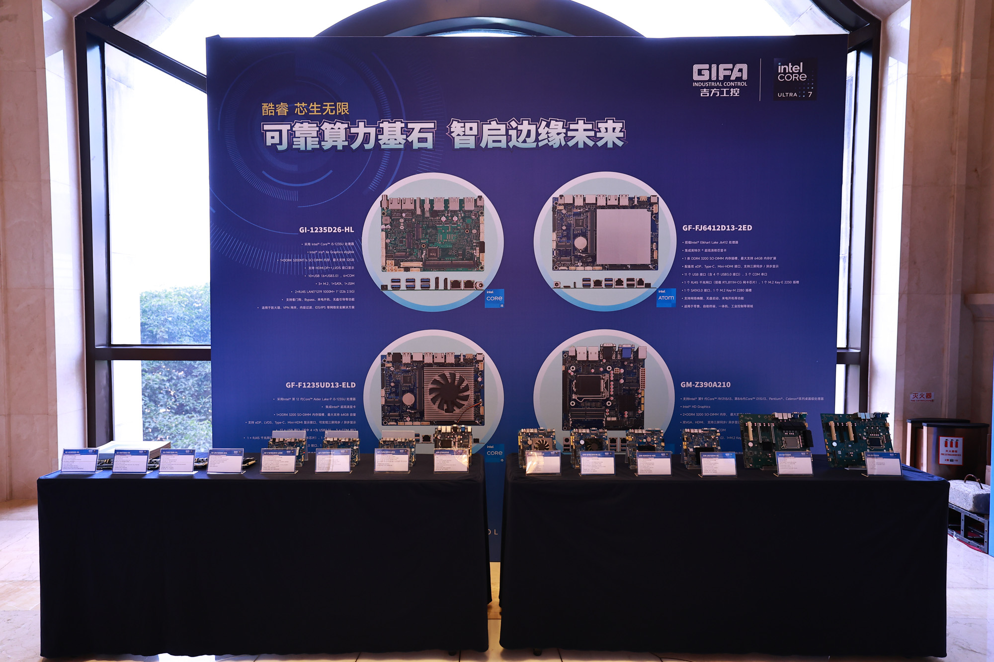 培训会现场展示了基于Intel® Core™ Ultra 5/7平台的系列新品,以及基于Twin Lake平台、Raptor Lake -P平台的主板新品。