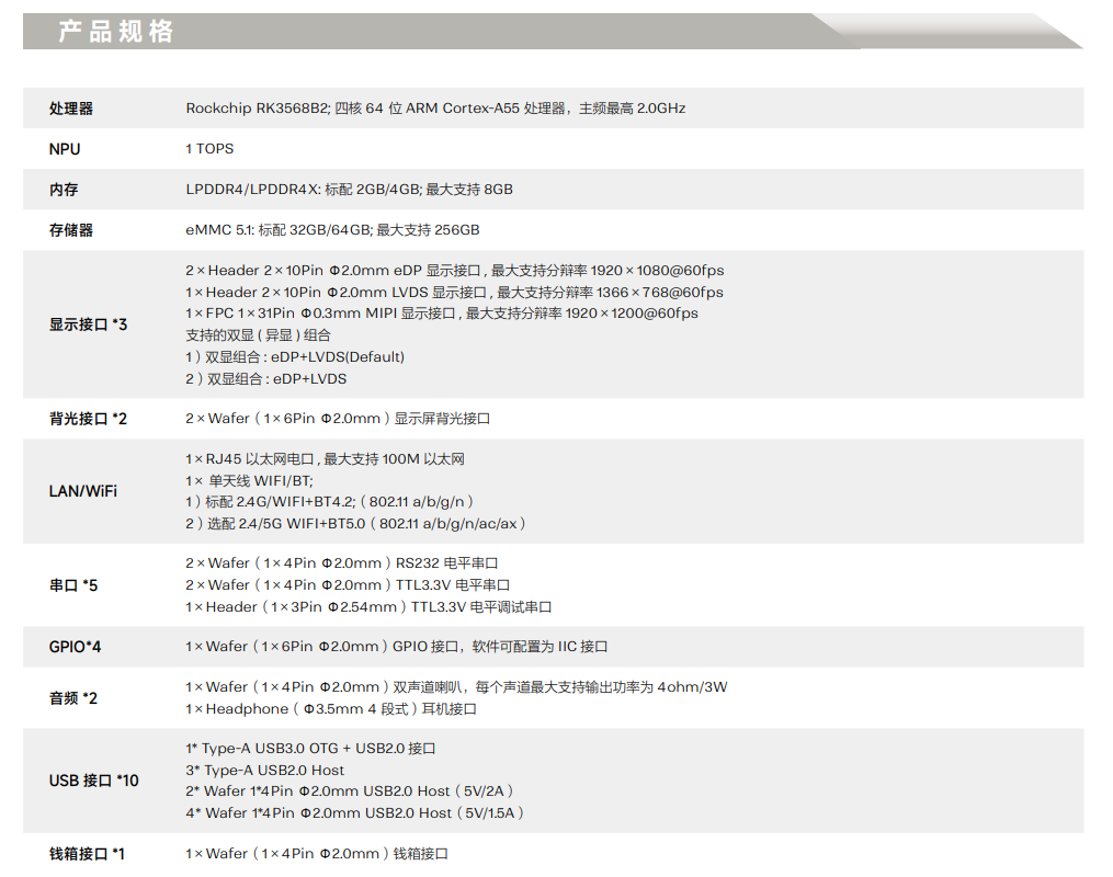 采用瑞芯微 RK3568 四核 64 位 Cortex-A55 处理器, 主频最高2.0GHz,效能有大幅提升;采用 22nm先进工艺,具有低功耗高性能的特点。